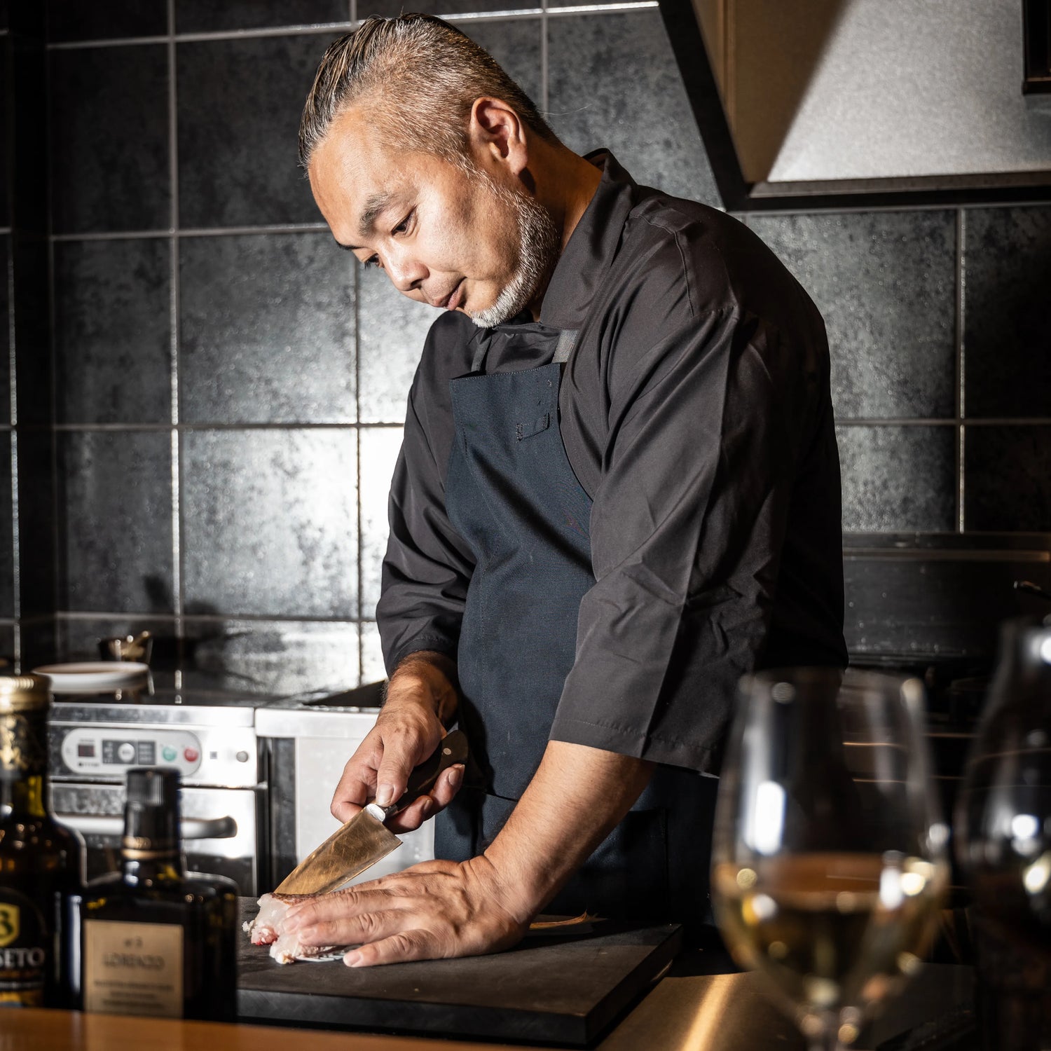オープンキッチンを中心に据えたカウンタースタイルの隠れ家的な空間では、料理が生まれる瞬間の音や香りが、まるで一つの物語のように広がっていく。
